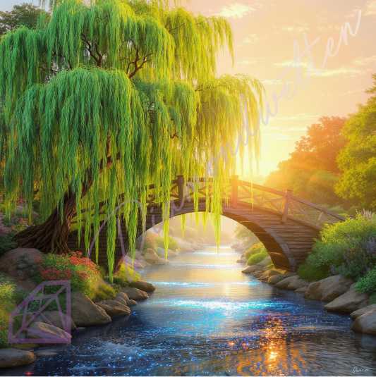 Diamond Painting Bild "Magischer Fluss unter der Weide" 50x50
