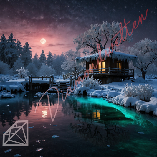 Diamond Painting Bild "Winterhaus am See" 50x50